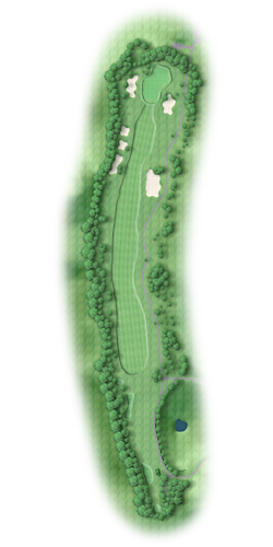 距離のたっぷりあるロングホールだけに、力の入るところだが、左サイドのOBは浅く、打ちこみやすいので要注意。フェアウェイ右サイドを狙って無難にティーショットするべきだろう。第2打も左右バンカーに注意し、フェアウェイ・キープし、第3打のアプローチにかける作戦が良いスコアにつながる。